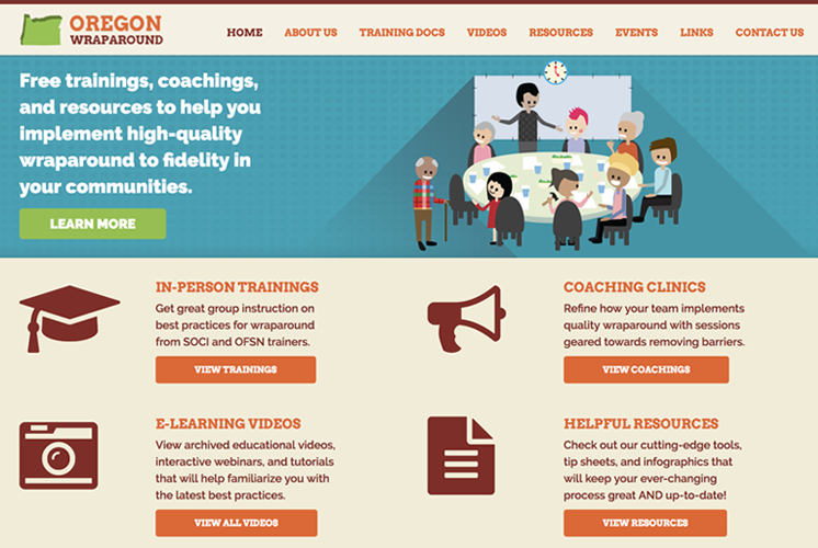 Created during my time working at Portland State University, this site was an accessible educational portal where users can get the latest information on best practices in social work. I channeled a light, energetic tone to suit our instructional designer's charming graphics that were sourced from her training documents, as well as to offset the heavy nature of the content. The site was optimized for all devices by customizing design elements per screen size to ensure a user experience that is as intuitive as it is aesthetic. I also created a campaign in Mailchimp to gather more data to help meet both current and future user needs. This PDF mockup was taken from live desktop screenshots. I handled the web design, development, creative/art direction, and email marketing.
